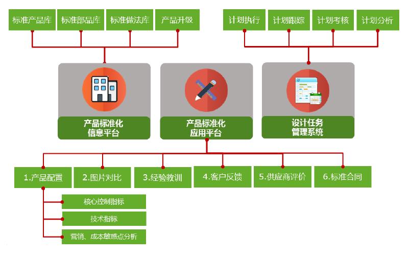 针对以上问题,L集团于2015年5月携手赛普爱德,启动产品标准化应用平台项目。通过“咨询+IT”落地方式,前端协助L集团梳理产品标准化体系,建立产品标准化信息平台。通过产品标准化应用平台辅助实现项目各阶段方案设计管理,基于设计任务管理系统实现全过程计划任务跟踪管理。