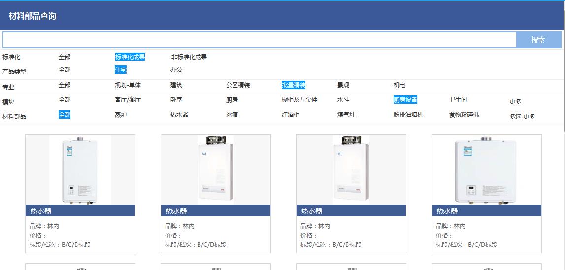 通过产品标准化信息平台,L集团设计部门实现对标准产品模块、标准户型、标准部品等信息多维度、多条件组合的快速检索。