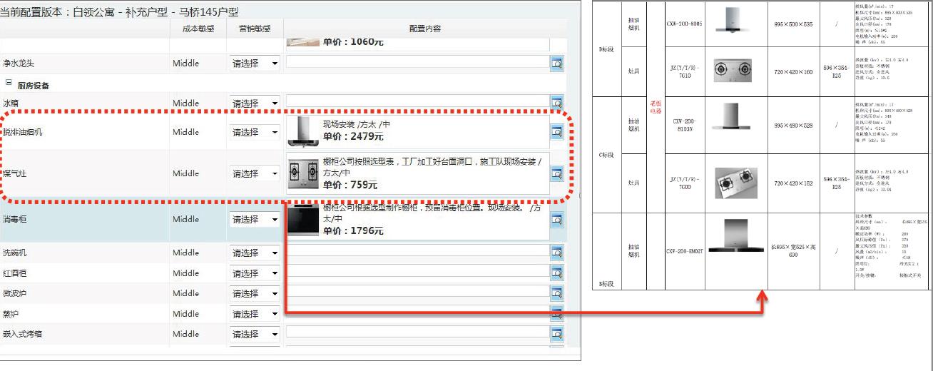 在配置过程中,设计人员可对标多个项目,不再仅仅依赖个人经验,系统平台可提供与此产品配置类似的低档、标准、高档三种选择参考,极大地缩短设计人员配置时间,降低配置成本。