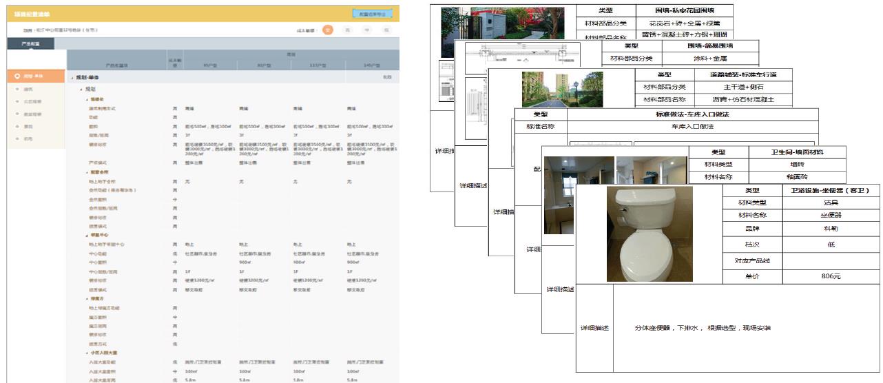 在项目组和L集团设计部门各专业线人员(规划-单体、建筑、室内、景观、机电、客户服务)的相互配合下,完成对标准产品库、标准材料部品库、标准模块库、标准做法库的搭建,快速建立设计标准管理系统。