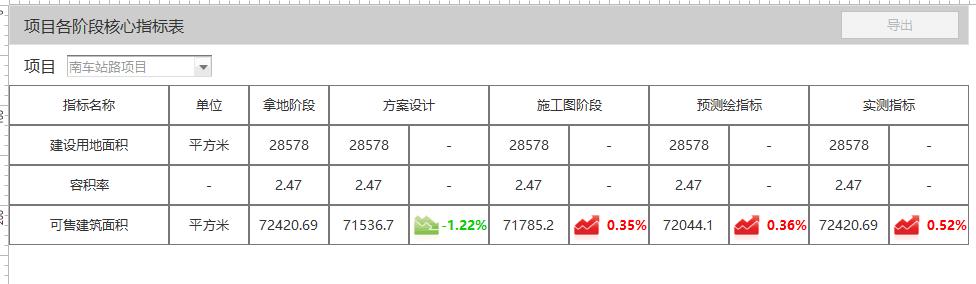 同时,优化项目产品配置,并与前两阶段指标进行对比,快速对比指标变动点,管控设计指标过程不超标。