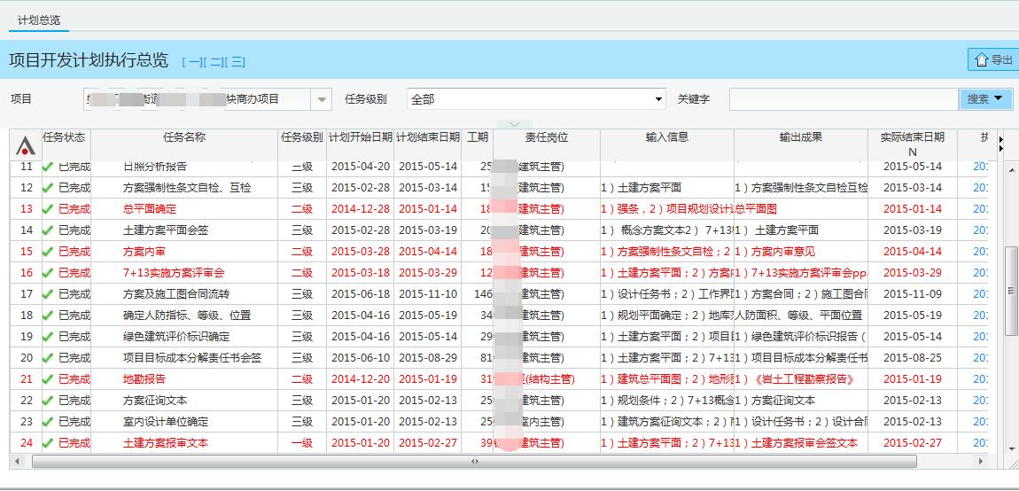 L集团设计部门结合项目总体开发计划,在系统中编制好各项目的设计专项计划,明确各项任务的责任人、时间、输入输出标准等。各岗位根据计划的工期要求,即使开展各项工作,也能定期进行任务执行情况的填报。