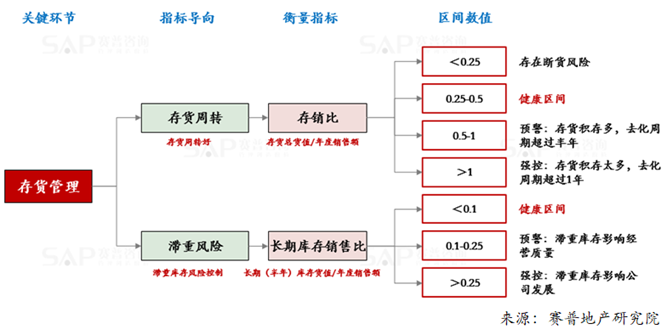 销售管理经营健康风险的关注点,包括土储转化高、供货周转快。