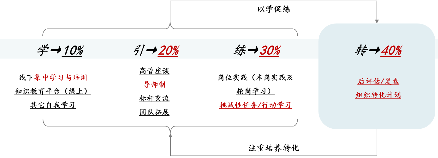 聚焦培养方式高效制定培养体系,采用人才发展“1234原则”,除传统培养外,增加人才落地转化及后评估等环节,强调总结复盘、落地所学(如图7)。