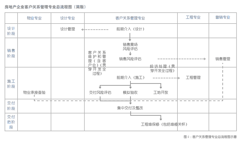 图2 为一标杆企业客户关系管理专业总流程,涵盖地产开发各阶段,对应客户关系全程管理阶段,供读者参考。