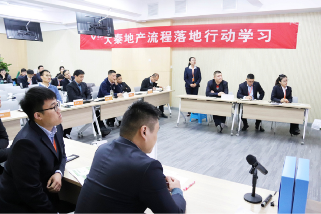 咨询成果设计完成后,在赛普的全程协助之下,大秦地产组织全员进行流程学习、落地演练、考试并对考试结果进行排名。与此同时,大秦地产依据管控成果组织人员调整落位,并开展了为期两天的全员职责解读大会,深入理解岗位职能,真正做到边学习、边落地、边辅导。